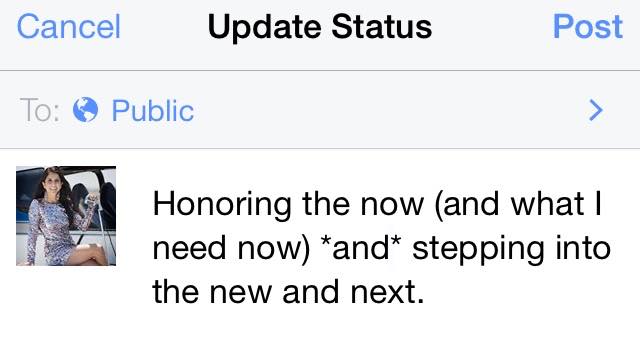 Is it time for you, too, to honor where you’ve most recently been (give yourself more of what you need) so that stepping into the new and next is that much more empowered, fruitful and enjoyable?